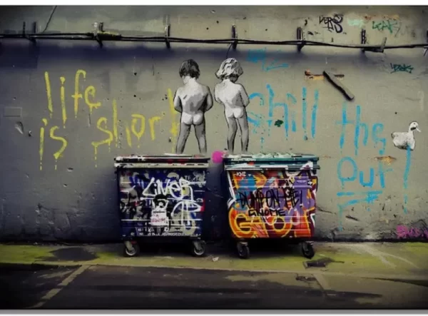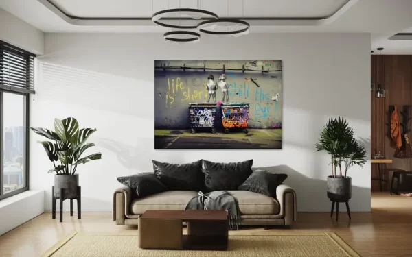 Life Is Short Two BANKSY BOYS CANVAS Art Print, Graffiti Lover & Street Art Urban Canvas Pop Culture Framed Art for Wall Decoration