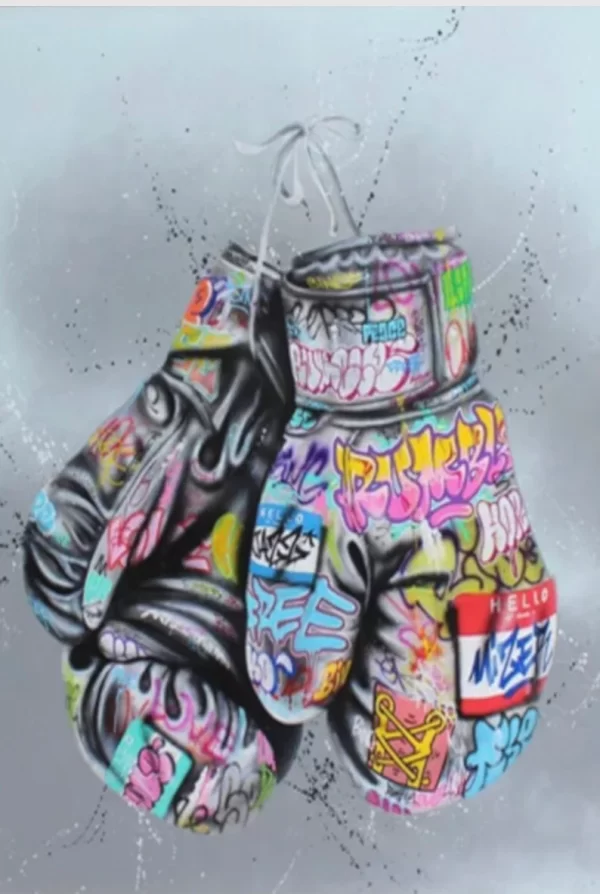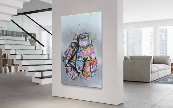 BOXING GLOVES Banksy Canvas Graffiti Wall ART, Colorful Gloves Print Sport Lover Ready to Hang Canvas Art for Game Room Décor