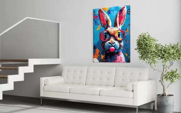 Funny Animal RABBIT Print CANVAS Wall Art, Maximalist Home Décor Nursery Room BEDROOMWall Art Canvas