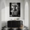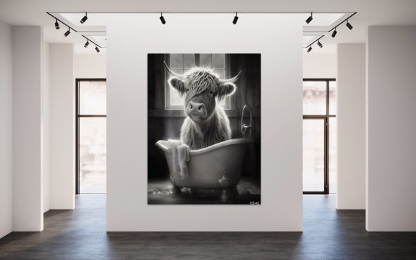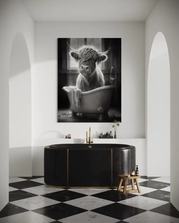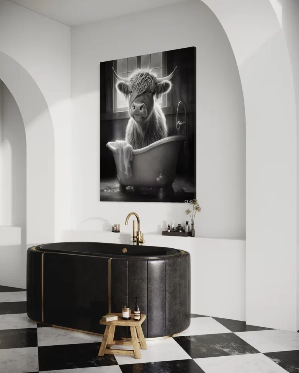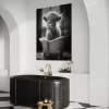 Highland COW BATHTUB Print Animal Canvas ART, Scottish Highland Cow Lover Toilet Framed Canvas Art for Home Bathroom Décor