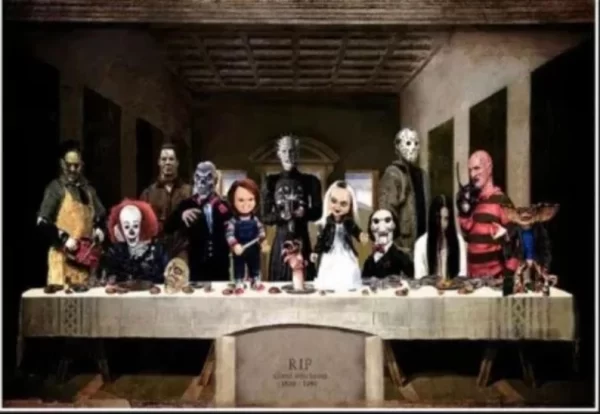 LAST SUPPER Horror Themed Canvas Print Wall ART, Horror Lover and Trending Home Décor Maximalist Last Supper Wall Art Gift