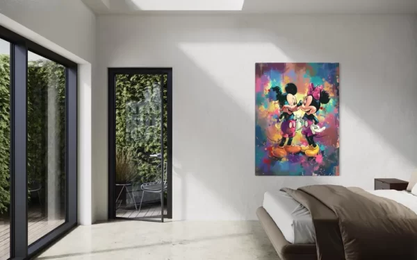 Mickey and MInnie Mouse Color Wall Art 70 x 100 approx Made to order Free delivery HD printing:1 panel High Definition Giclee modern canvas printing artwork, long lasting durability coating (Eco-solvent Ink), this Canvas Prints is water-proof, moisture-proof and UV-resistant. Easy Hanging:The canvas printing has been perfectly stretched on the wooden pine frame not your cheap MDF As well as staple the design onto the cured pine frame, we also delicately tape over the staples for a more professional look Strong hooks already mounted on each design Each canvas panel that we ship is packed well in a solid cardboard box to keep it stable and avoid shipment damage. A perfect wall decorations for living room, bedroom, kitchen, office, hotel, dining room, office, bathroom, bar etc… Due to different brands of monitors, actual wall art colors may be slightly different from the product image Our pricing is very competitive please view other shops for comparison 100% Satisfaction with 5 Star Reviews