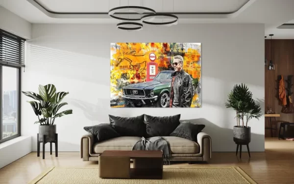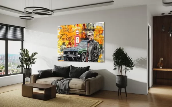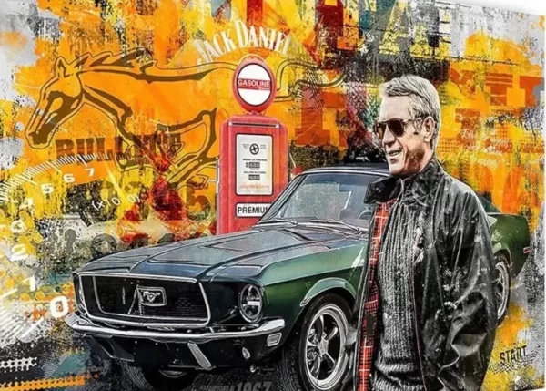 STEVE MCQUEEN Race Car Photo Print Canvas ART, Modern Home Décor Steve Mcqueen Bullet and Vintage Car Print Wall Art for Gift